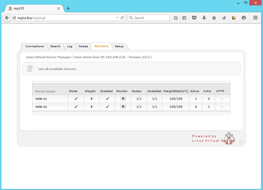 Navigate your prefered browser to mylvs.foo, login using demo, demo.