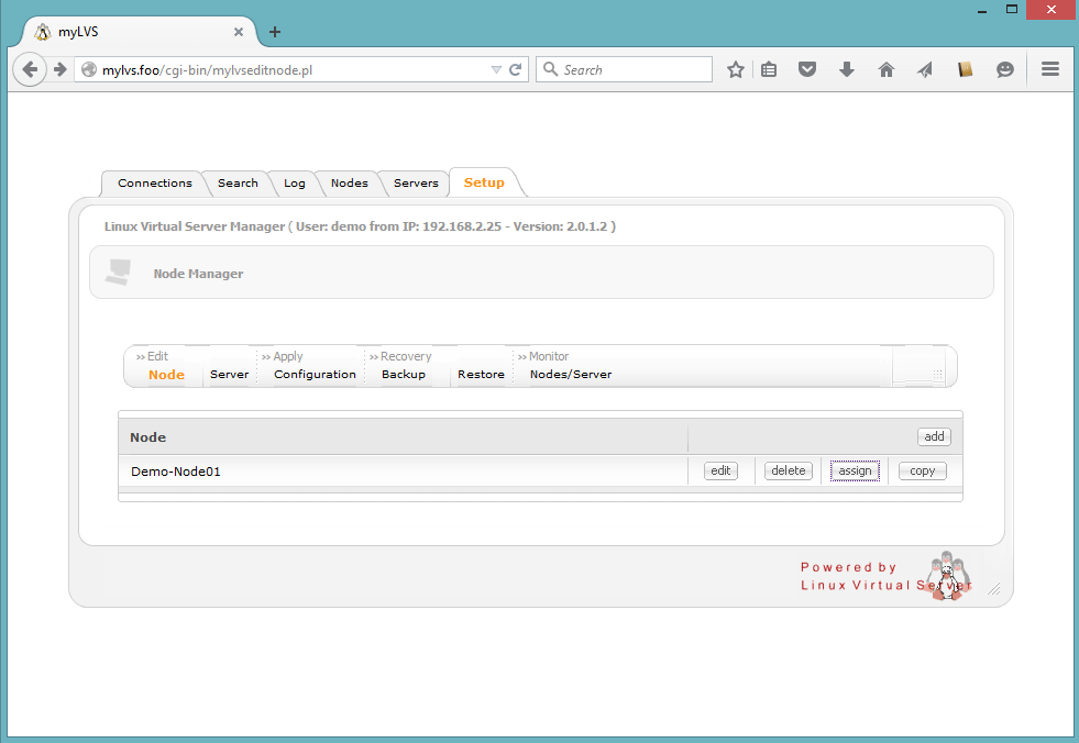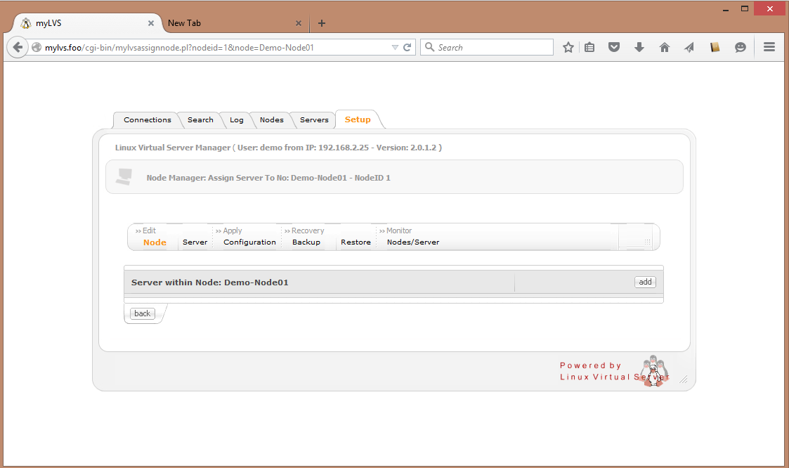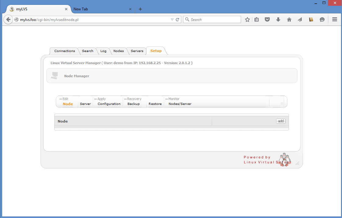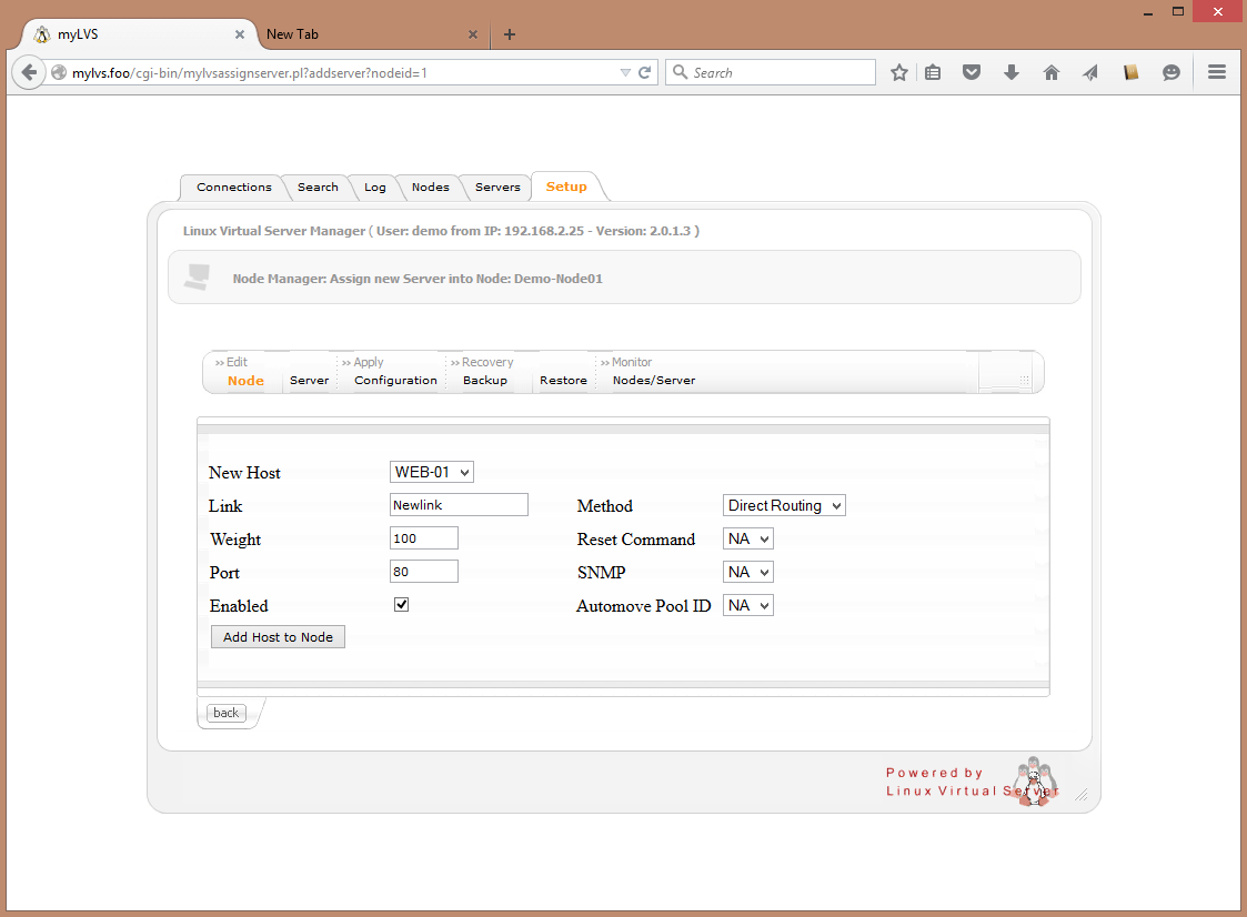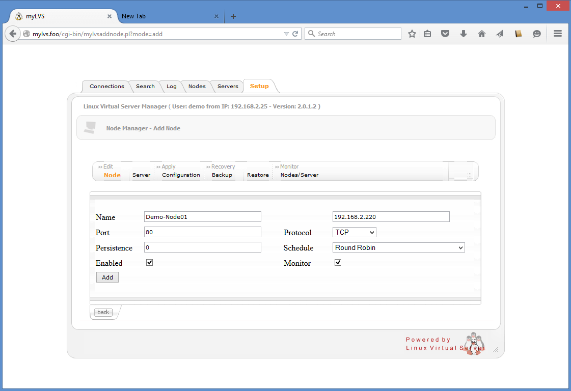 Add tne new node,we use Demo-Node01 with the node ip 192.168.2.220 on port 80 (http).