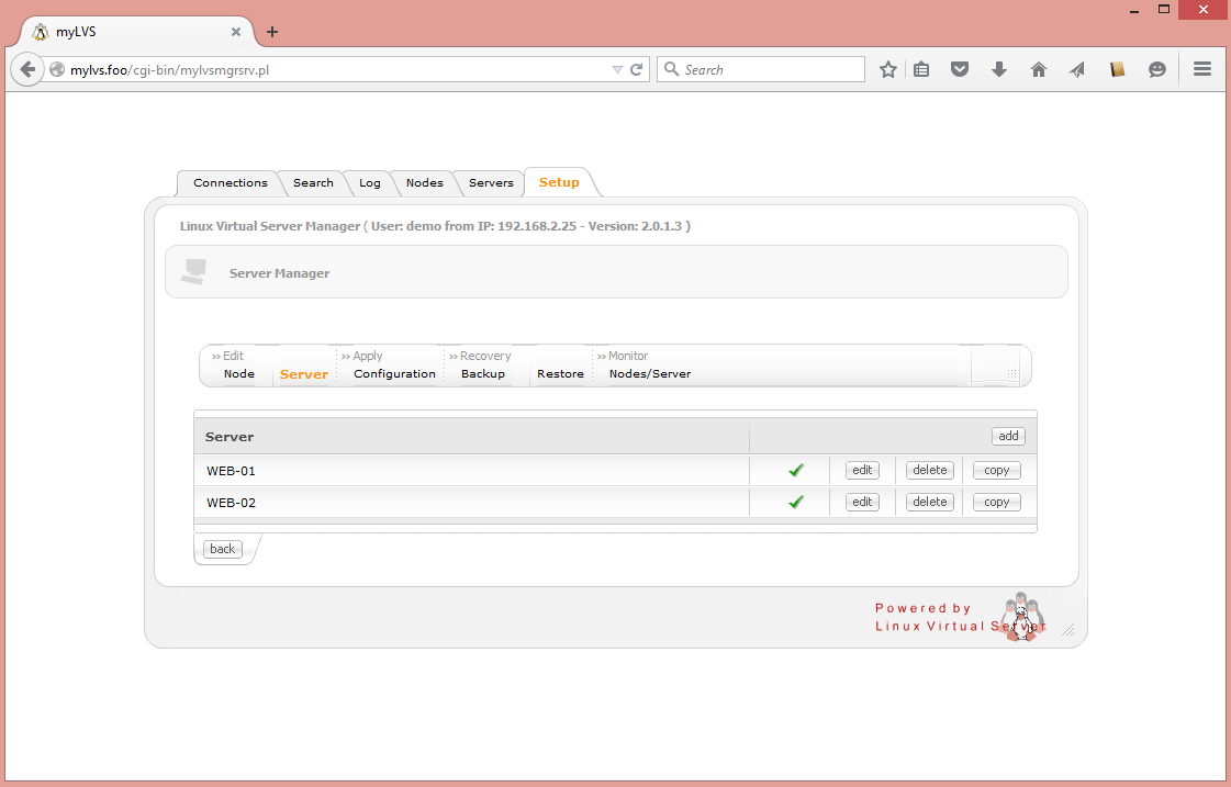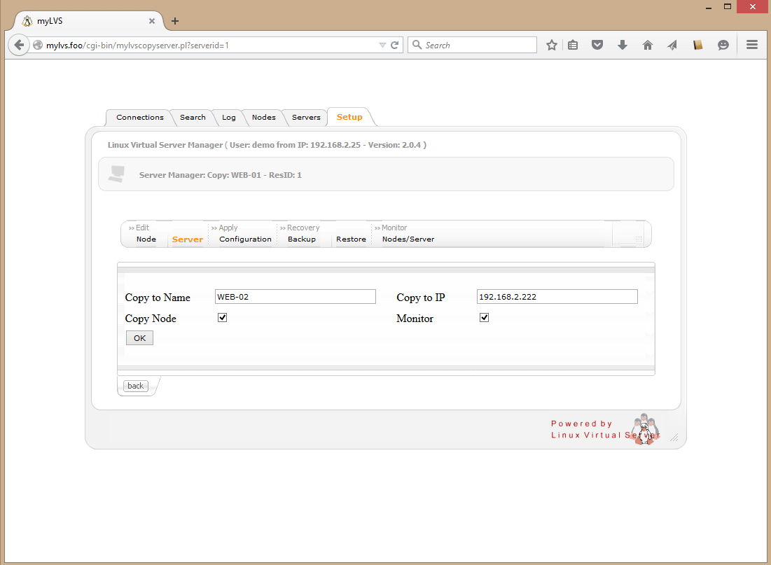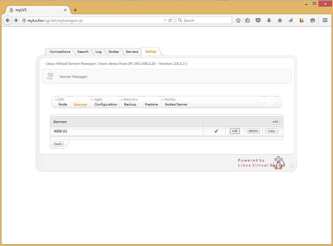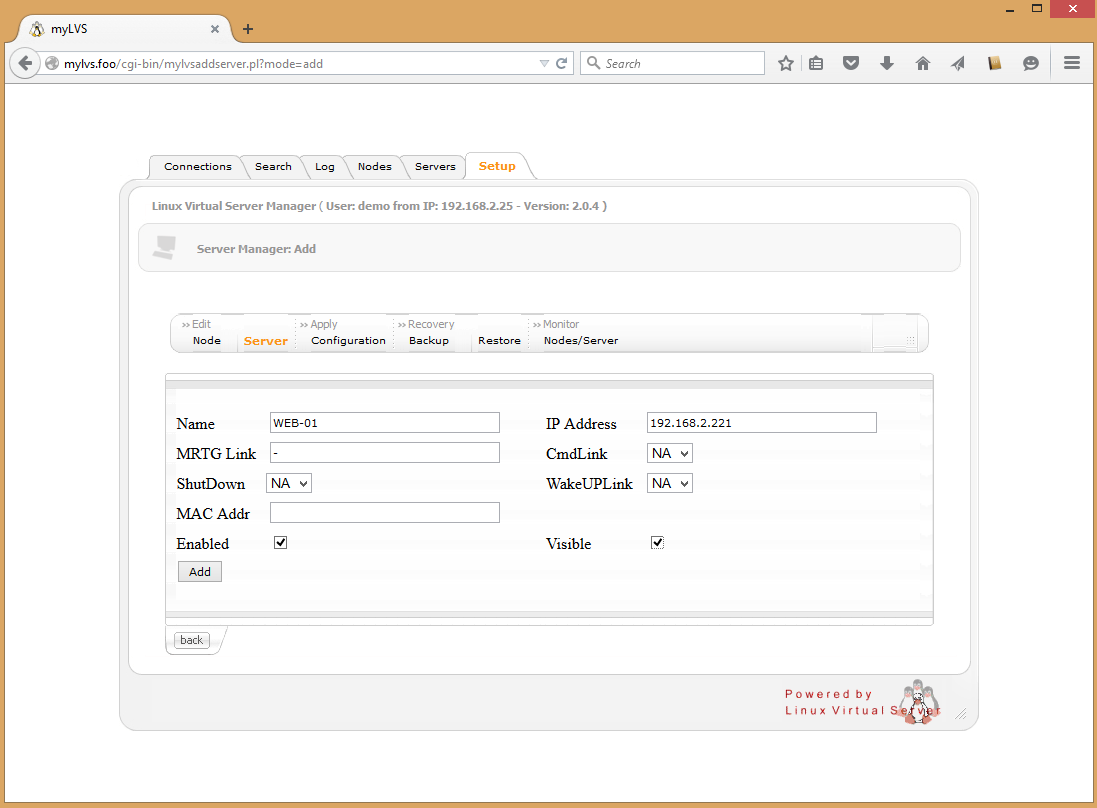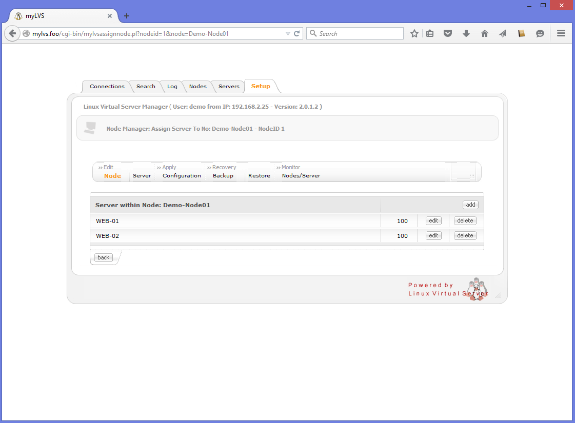 Add tne new node,we use Demo-Node01 with the node ip 192.168.2.220 on port 80 (http).