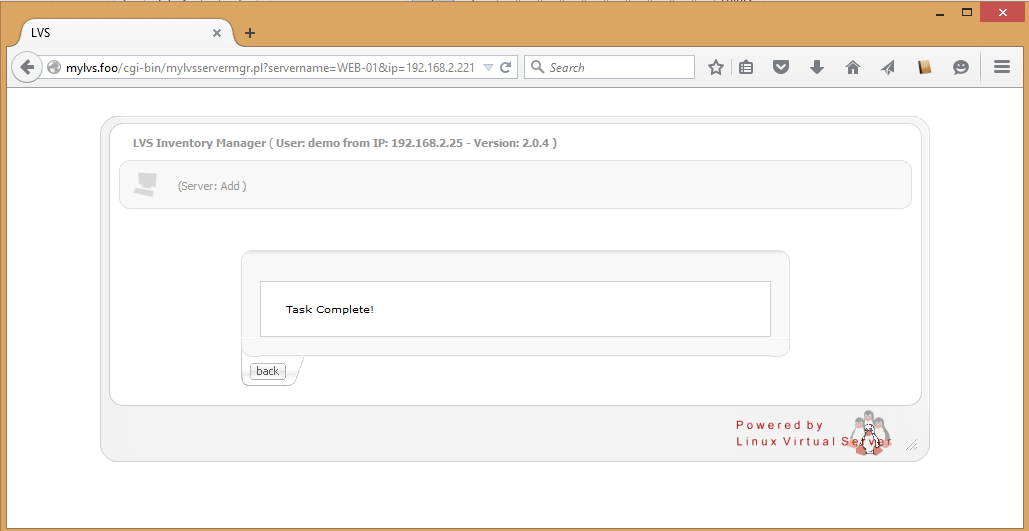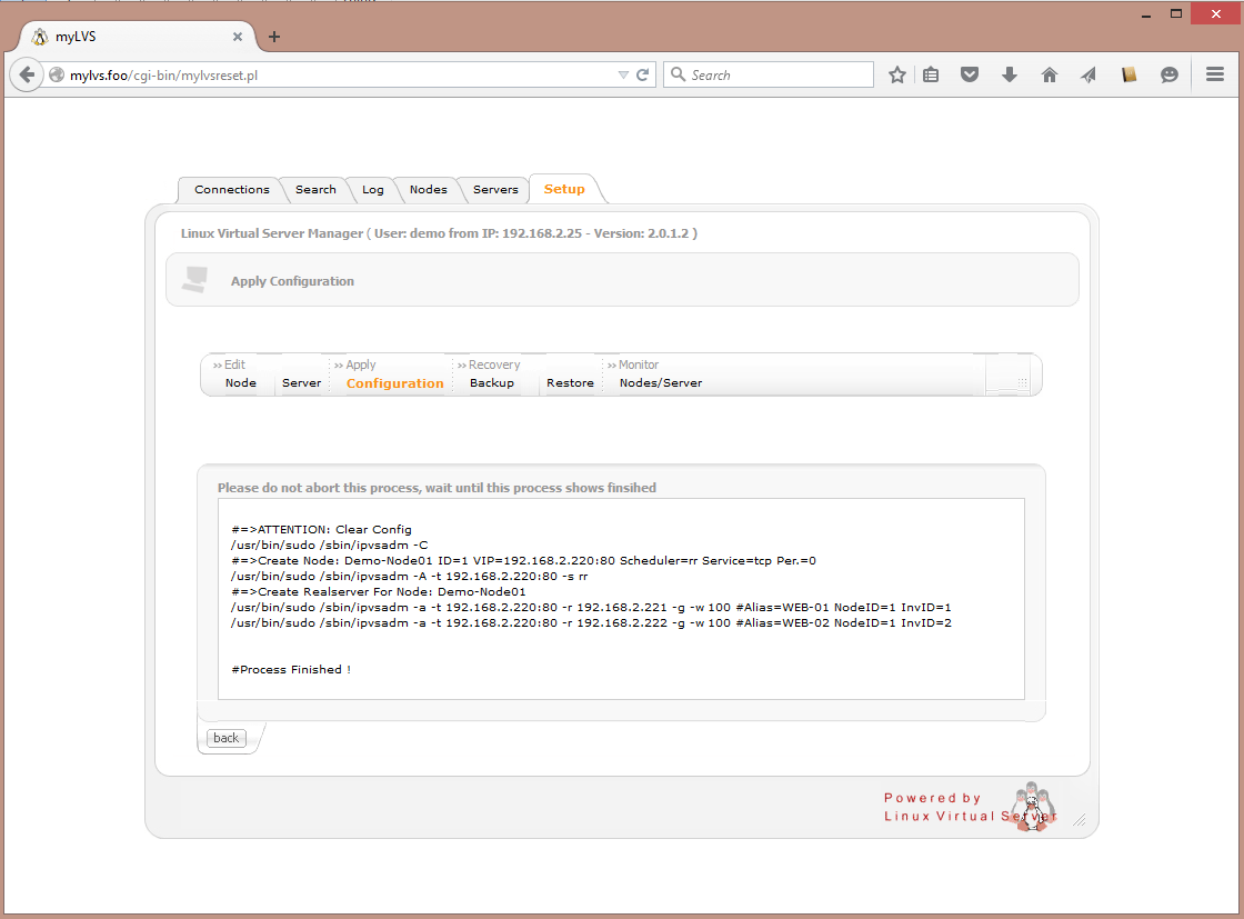 Now goto Apply on Configuration, select OK to apply the current configuration to myLVS