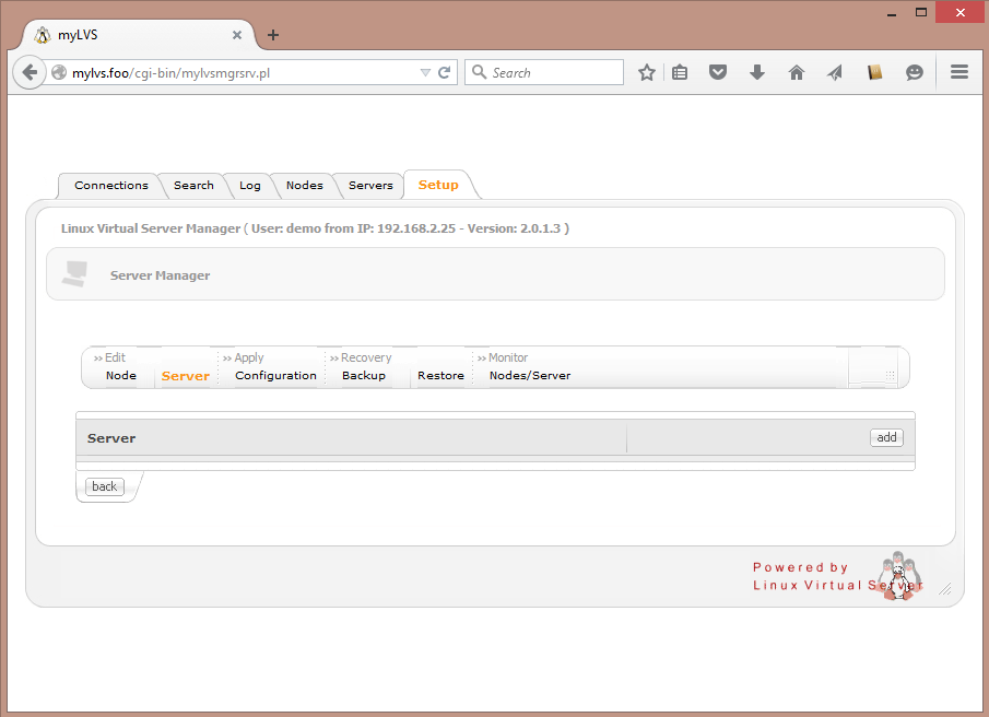 Setup the hosts, goto http://myls.foo ->Setup->Server