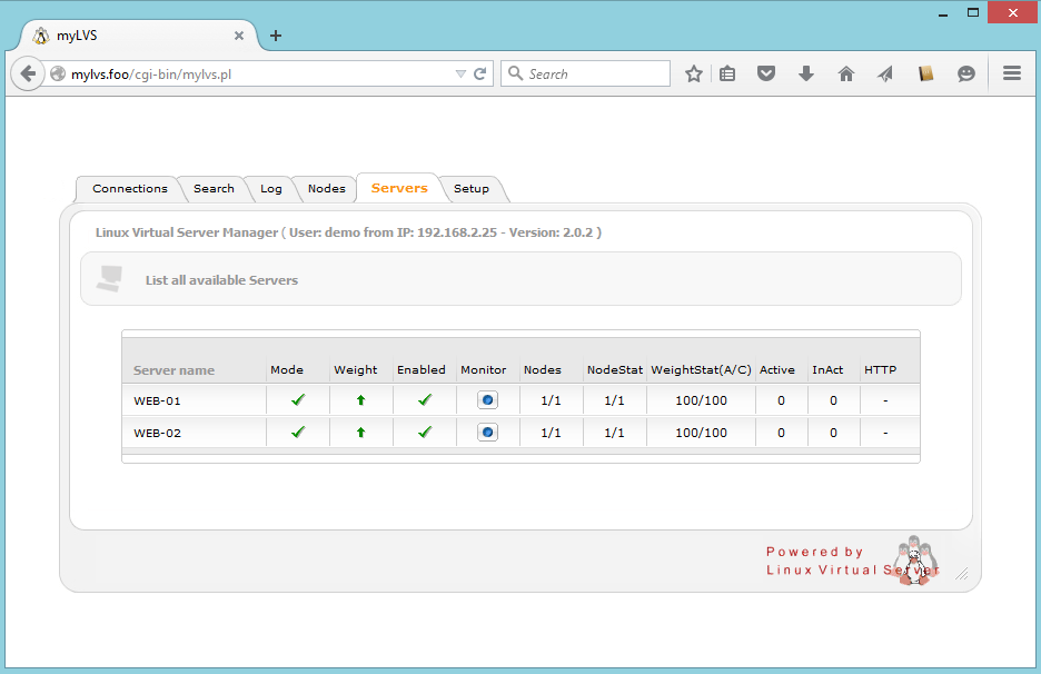 The test setup runs two real server using Direct Routing (DR). We will use later 2 different OS on our test host, Linux and Windows together.