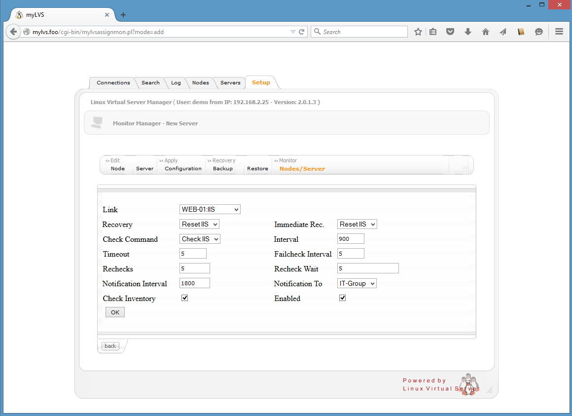 Setup myLVS Monitoring allows you to check the Real Server (RS) state, it can be configured to run additional auto repair scripts in case a failaure was detected.